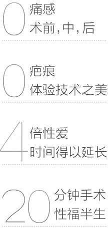 “第4代欧式FPS包皮环切整形术”利用双镜显微、LEP刀、无线缝合等技术,把整形、美容、治疗融为一体,精确入刀深度,科学计算包皮“黄金比例”,选择性祛除多余包皮,实现阴茎美容,延缓射精时间3-6倍,视觉及性提升的双重新体验。